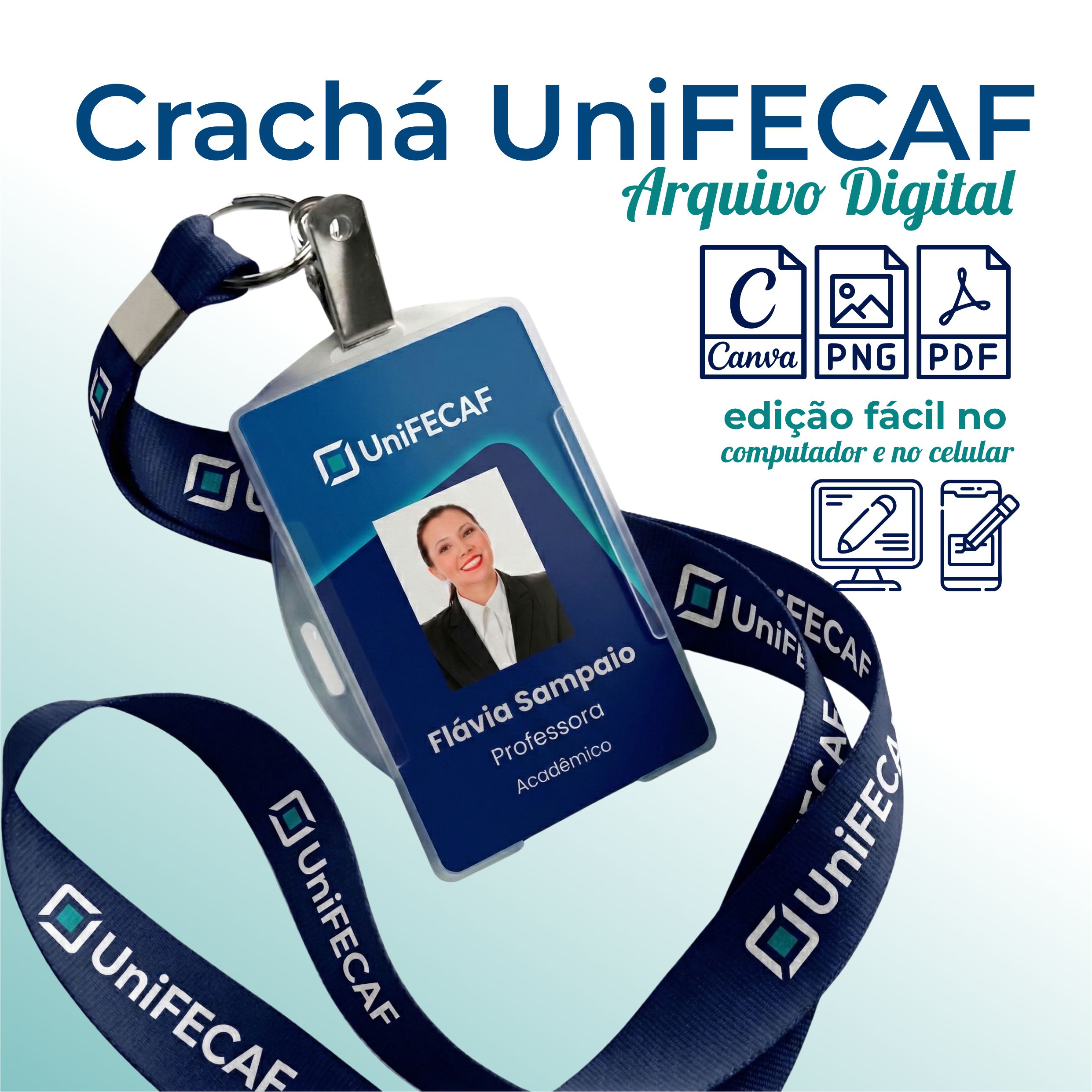Personalize seu próprio crachá da UniFECAF com este arquivo digital completo e editável, pronto para imprimir em casa ou na gráfica.